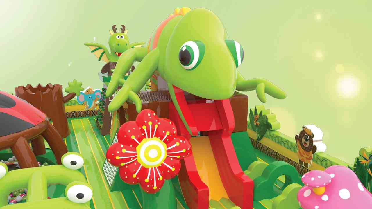 6米高的變色龍滑梯特備炫彩燈光與動態變色效果,營造出幻彩多變的視覺奇觀。每次滑行都彷彿穿越於流動的色彩秘境,為遊玩過程注入繽紛驚喜與無盡趣味。