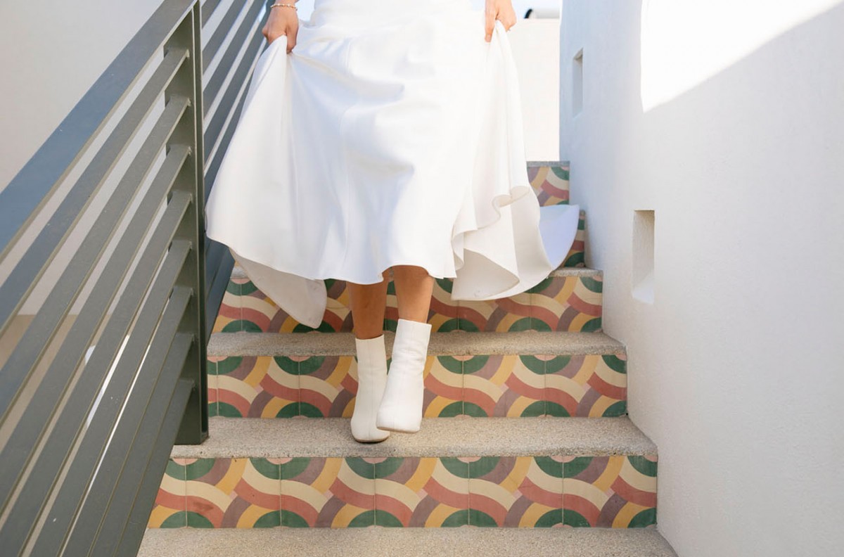 穿甚麼品牌出嫁?大家都說Jimmy Choo,Roger Viver,Valentino等尖頭高跟!但其實你也可以不一樣吧!就來對白色的Boots吧!首先,香港女生的婚紗一般都很長,會蓋著鞋子,賓客根本看不到你的鞋子呀!所以真的不用大花金錢在鞋子上,但一定找對舒服的!純白色的Boots,你可以在入面穿厚厚的襪子,很舒服,而且感覺獨特、帥氣,是自主自信女性的感覺。