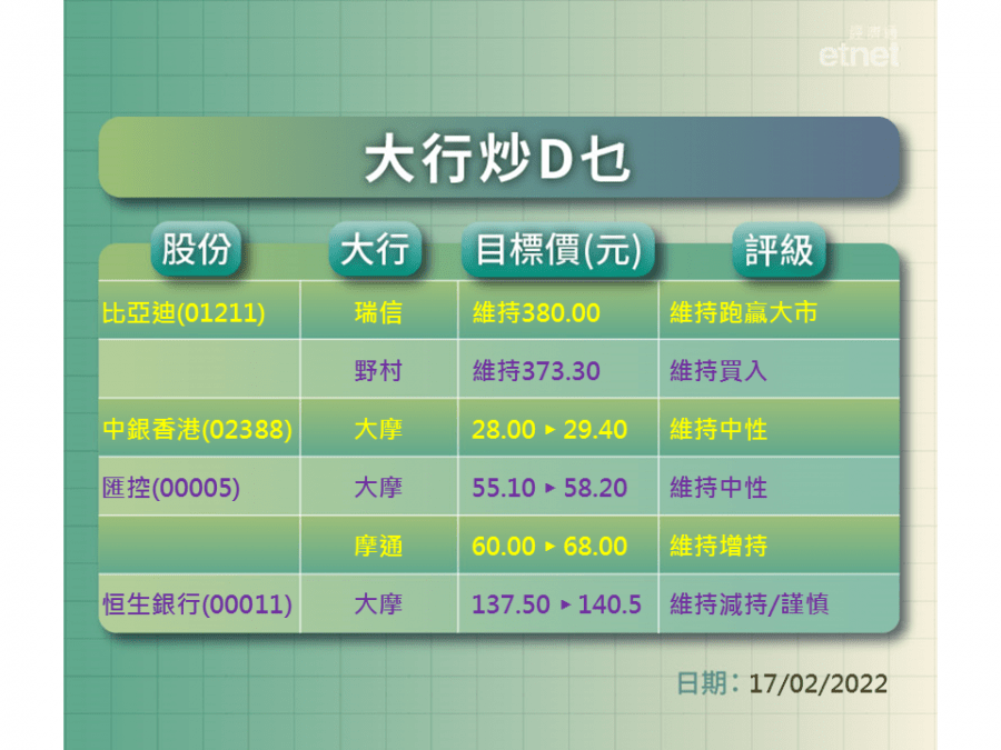 【大行炒D乜】瑞信野村點評比亞迪?大摩細摩點睇銀行股?
