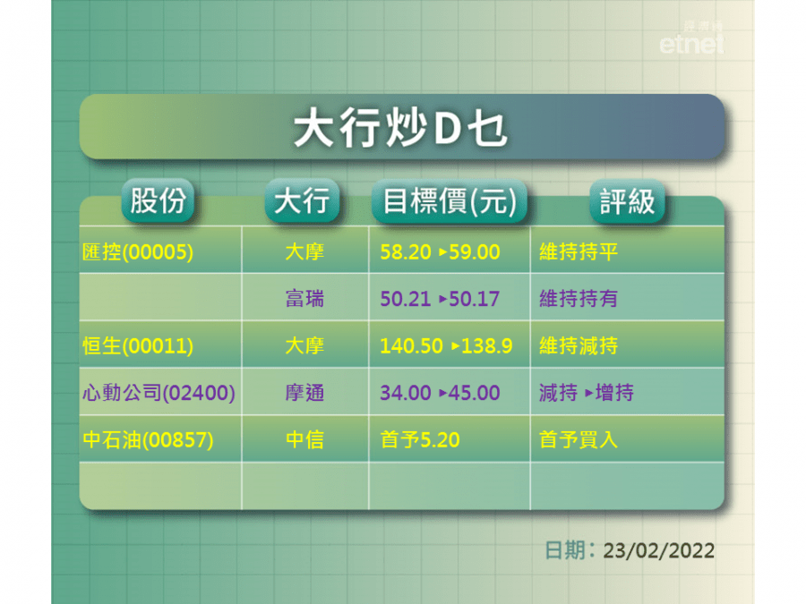 《異動股》匯控(5)升逾3%突破20天線,報58﹒2元